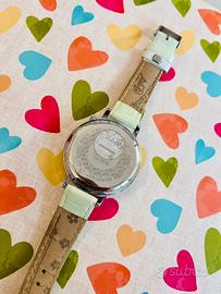 Vendo orologio originale Didofà da donna, famoso per i suoi quadranti artistici in miniatura con design molto particolare e creativo. Caratteristiche: •Marca: Didofà originale •Design Italy •Movimento al quarzo •Water resistant 3 ATM •Cassa in acciaio stainless steel •Cinturino verde in pelle •Quadrante artistico con miniatura decorativa •Ghiera con strass Orologio in buone condizioni come da foto. Cinturino con normali segni di utilizzo. Vendo per inutilizzo. Confezione regalo con piccolo omaggio a sorpresa
