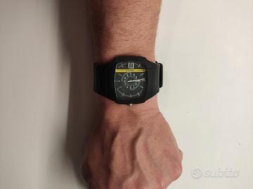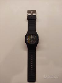 Quadrante a sfondo nero con tipica bada verticale gialla.