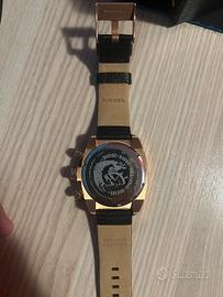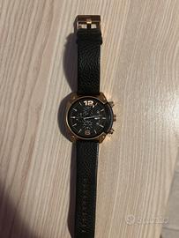 Questo è un orologio cronografo da uomo Diesel Overflow, modello DZ4297, con cassa in acciaio rosato e cinturino in pelle nera
