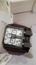 OrologioCristalloMineraleLarghezza della cassa 48,00 mm, spessore della cassa 10,00 mm. Datario al 4, resistenza all'acqua 50 metri, movimento al quarzo. Materiale della cassa Acciaio inossidabile brunito, forma della cassa geometrica. Colore del cinturino testa di moro, quadrante grigio