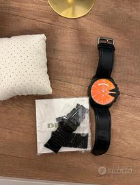 Orologio da polso con quadrante bicolore nero e rosso.