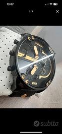 Orologio da uomo Diesel mod Mr.Daddy, cassa nera con finiture e dettagli in oro/bronzo, mai usato ancora nella scatola originale con documenti