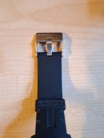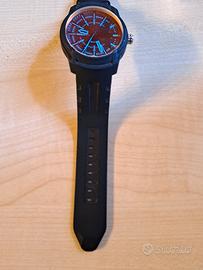 Orologio resistente all'acqua fino a 10 bar munito di quadrante azzurro e nero e cinturino in gomma,in perfette condizioni, c'è solo da mettere batteria nuova Vendo insieme a confezione e libretto originale.