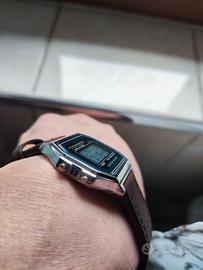 orologio digitale con cinturino in pelle