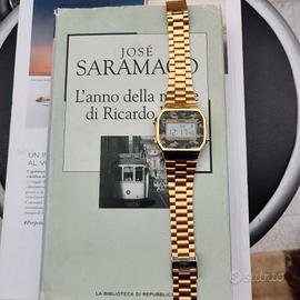 Orologio adulto unisex Casio con quadrante multicolore Comouflage Military A168WEC-1EF VINTAGE. Orologio leggero e multifunzione di colore oro, adatto per ogni giorno.