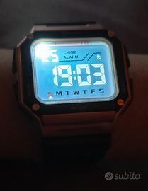 Orologio digitale ideale per ragazzi o bambini con molteplici funzioni: anti-shock, allarme, data, retroilluminazione a LED, ore 12H/24H, suoneria oraria, cronometro, sveglia.