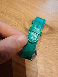 Vendo orologio Disney con quadrante raffigurante Topolino. Modello unisex pensato per bambini, con retro in acciaio inox e cinturino verde originale. Ha un look vintage e presenta normali segni di utilizzo sulla cassa e sul cinturino (vedi foto). Perfetto per collezionisti, appassionati Disney o come primo orologio per un bambino. Movimento al quarzo Cassa in acciaio Numeri rossi ben visibili Cinturino verde in similpelle Unisex, ideale per bambini