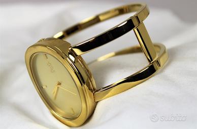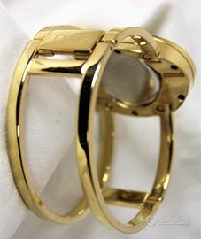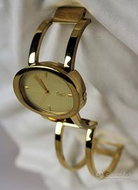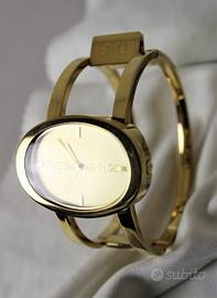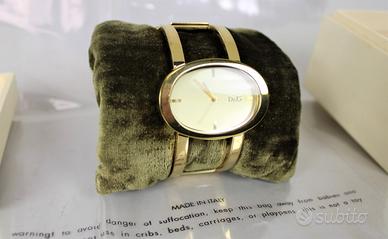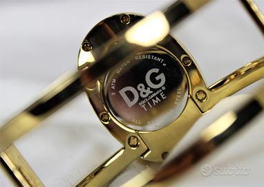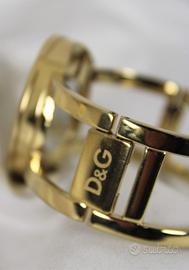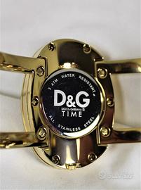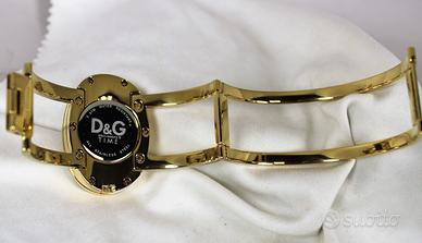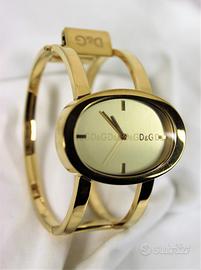 Originale orologio Dolce e Gabbana Time in acciaio dorato con cinghietta a doppia piattina rigida con chiusura a scatto.