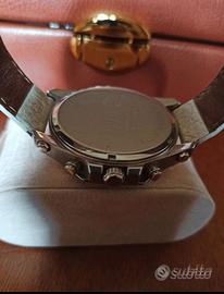 Ha segni sulla cinghietta, ancora originale, visibili nelle foto, poiché è stato indossato, comunque ancora in ottime condizioni la cassa e l'orologio che necessita solo di una batteria nuova.