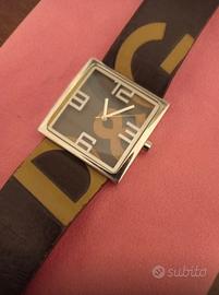 Orologio vintage d&g Time originale in cuoio e acciaio con cassa quadrata, anni 2000. Pila da sostituire. Misure in foto