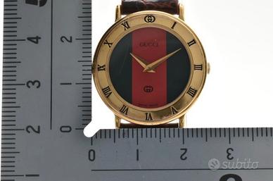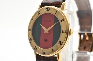 un orologio da abito svizzero che rappresenta l'apice dell'estetica di lusso del marchio a inizi degli anni '90. Questo modello è celebrato per la lunetta in tono oro, con indici delle ore in numeri romani incisi, un design che è diventato una delle icone orologiere più durature di Gucci. Con cinturino in pelle di lucertola dall'elegante motivo granulato e profilo snello, questo orologio si presenta come un accessorio raffinato adatto sia all'abbigliamento formale sia a quello professionale.