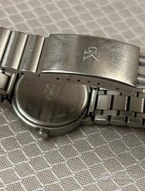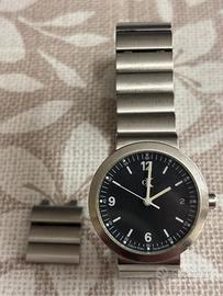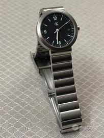 Orologio Calvin Klein ,donna ,originale ,swiss made ,in acciaio ,fondo nero e datario ,pila nuova ,orologio funzionante . Utilizato ma in buone condizioni , con qualche piccolo segno causa utilizzo ,come da foto .