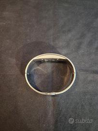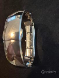 Quadrante rettangolare bianco con indici silver, vetro minerale leggermente segnato.