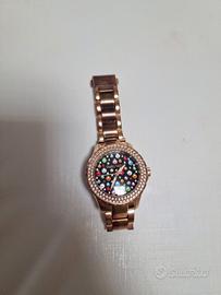 orologio donna capri watch oro con quadrante nero con swaroski.cinturino macchiato da pulire e batteria scarica