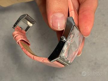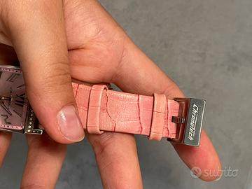 Vendo splendido orologio rosa Chronotech con cinturino in vera pelle e quadrante in acciaio con strass esterni.