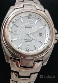 Orologio Donna Citizen movimento Eco Drive (carica luce di riserva fino a 180 giorni) in vetro zaffiro, tipo di quadrante: analogico colore bianco, funzioni: solo tempo, materiale cassa : super titanio T1+ IP dimensioni cassa 32 mm resistenza all' acqua WR 10 bar ; Cod. prodotto EW 0910-52B.