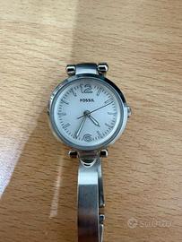 Vendo raffinato orologio da donna Fossil originale (modello ES3269), caratterizzato da un design a bracciale rigido in acciaio inossidabile, elegante e minimale.