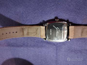 orologio da donna Gattinoni, cinturino in tela/pelle colore beige, cassa in acciaio nichel free e quadrante colore beige, completo di contenitore originale in latta. Il cinturino ha la parte interna in pelle leggermente rovinata dal tempo, anche se mai indossato, perfettamente funzionante