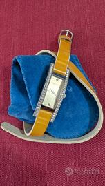 Orologio donna WINTEX mai usato con scatola e garanzia , cassa rettangolare con strass, cinturino in pelle gialla per essere avvolto intorno al polso.