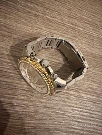 Orologio da donna Guess in acciaio bicolore (argento e oro) con quadrante decorato da brillantini e funzioni multifunzione (giorno, data, 24h).