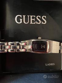 Elegante orologio da donna Guess in acciaio con dettagli luminosi e quadrante firmato Guess. Articolo usato, presenta leggeri graffietti sul metallo. Attualmente la pila è da sostituire, ma posso comprare una pila nuova e installarla con un piccolo sovrapprezzo. Completo di scatola originale (come da foto). 💌 Per maggiori foto o dettagli contattami in privato!