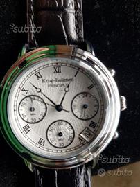 Orologio da donna nuovo krug-baumen modello principle, cronografo, data, movimento al quarzo, cinturino in pelle nero, diametro della cassa 35 mm, con scatola originale ed istruzioni.