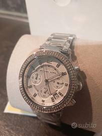 Descrizione Orologio Michael Kors- MK5353 Dimensione cassa: 38 mm Genere: Donna Misura cassa: 38 mm Colore quadrante: Silver, Sunray Spessore cassa: 12 mm Finitura cassa: Lucida Colore cassa: Acciaio Materiale cassa: Acciaio Materiale cinturino: Acciaio Colore Cinturino: Silver Colore: Grigio, Movimento: Quarzo Cronografo, Water resistant: 5 atm Confezione: Originale Michael Kors
