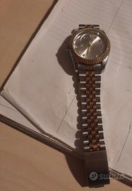 orologio Donna con diamantini al posto delle ore, ghiera in colore oro, il quadrante in finta madre perla. cinturino in acciaio inox colore oro e acciaoio, il caricamento è a mano con la.corona colore oro.