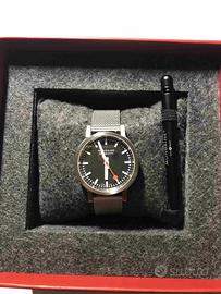 Usato in perfette condizioni con bracciale Mondaine in acciaio satinato corredato del suo bracciale originale in pelle. Data di acquisto 17/04/2024 (ancora in garanzia)