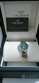 Quadrante: madreperla verde. Lancette in PVD oro rosa e indici in zirconi bianchi. Quadrante rotondo.