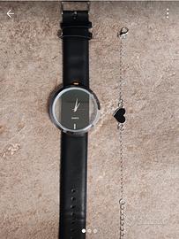 orologio da polso con Cinturino nero in similpelle braccialetto sottile con un ciondolo a forma di cuore nero
