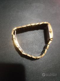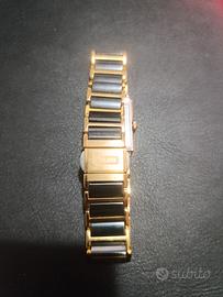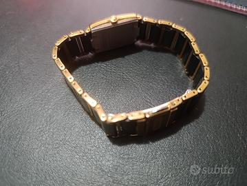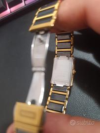 vendo orologio donna Splendido Rado Jubilé, un capolavoro di design svizzero che fonde eleganza e materiali d'avanguardia. L'orologio si presenta in condizioni estetiche veramente eccezionali, praticamente pari al nuovo e privo di graffi visibili, grazie alla resistenza della rinomata ceramica hi-tech di Rado. Quadrante: Nero minimalista con 4 diamanti autentici incastonati agli indici. Materiali: Acciaio inossidabile con finitura PVD oro e inserti in ceramica nera antigraffio. Movimento: Quarzo svizzero di alta precisione (batteria appena sostituita). Vetro: Zaffiro bombato a filo con la cassa. Chiusura: Doppia deployante a scomparsa. Stato: Orologio usato ma conservato con estrema cura. Nessun segno di usura su cassa o bracciale. Meccanicamente perfetto.