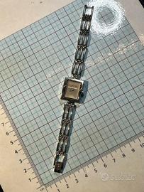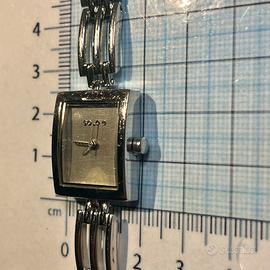 In vendita un raffinato orologio da polso femminile del brand SOLO, un accessorio dal carattere deciso che unisce la precisione di un segnatempo allo stile di un bracciale di design. Perfetto per chi ama il minimalismo geometrico. Caratteristiche Tecniche: • Marca: SOLO (Logo originale con cerchio siglato) • Quadrante: Silver satinato, stile minimalista senza indici per una lettura pulita ed essenziale. • Cassa: Quadrata, in metallo lucido con finitura cromata (circa 21 x 21 mm). • Materiali: Fondello in Acciaio Inossidabile (Stainless Steel Caseback) per maggiore durata e ipoallergenicità. Lunetta in metallo base. • Cinturino: Particolare maglia a tre binari "open space", leggera e traspirante, dall'aspetto architettonico (larghezza circa 14 mm). • Condizioni: Ottime, come da foto. • Accessori inclusi: Scatola rigida (non originale) con cuscinetto espositivo in tessuto tecnico. Tag #OrologioDonna #SoloWatch #OrologioMinimal #MinimalistStyle #VintageStyle #OrologioQuadrato #AccessoriDonna #DesignModerno #OrologioArgento #ChicStyle