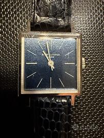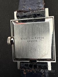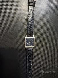 Orologio gioiello svizzero da donna anni ’60 a carica manuale, condizioni ottime, specie se si considera che l’orologio ha oltre 60 anni di vita; dimensioni della cassa 28 x 28 mm; corona marchiata così come il fondello con il suo numero di serie. Cinturino di pelle nera nuovo; orologio perfettamente funzionante. Non spedisco.
