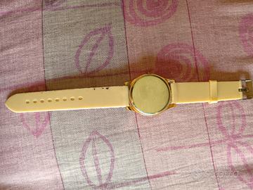 Vendo bellissimo orologio da polso al quarzo con cinturino in silicone, senza batteria. Cassa rotonda in metallo color oro. Design raffinato ed elegante.