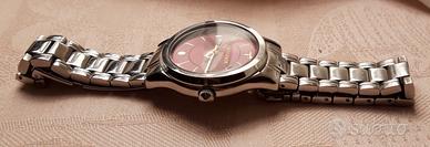Orologio in perfette condizioni marca Trussardi, con quadrante 34mm in acciaio inox, quadrante analogico classico, color bordeaux. Movimento al quarzo, vetro minerale, cinturino in acciaio, resistente all'acqua (50m). Senza scatola.