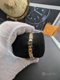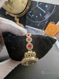 Design raffinato e scenografico, con corona decorativa superiore e bracciale coordinato: un orologio pensato come accessorio di classe, ideale anche come regalo.