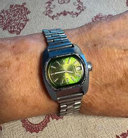 Orologio da donna Says Watch in acciaio con quadrante verde, modello automatico con sistema antichoc, con qualche segno di usura ma perfettamente funzionante