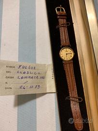 Orologio donna vintage marchio Fulgor laminato oro, carica manuale, funzionante, cinturino d epoca . Con certificato di garanzia anno 1979. Diametro quadrante circa 25 mm.