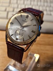 Orologio dress Pierce, modello Super Shock Resist anni 60, in ottime condizioni, ottima vestibilità e bella presenza al polso. Quadrante argenté sano con una bella patina. Cromato con fondo acciaio, 36 mm fuori corona. Maison poco conosciuta ma di grande tradizione: all'epoca era una manifattura, producendo i propri calibri. Cinturino generico nuovo. Orologio revisionato fine 2022.
