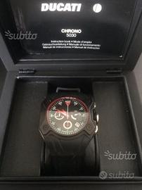 Orologio ducati corse by breil,movimento cronografo al quarzo swiss Made, modello Ronda 5030. Cassa 44mm,quadrante in fibra di carbonio,corona in acciaio. Cinturino in silicone raffigurante battistrada pneumatico. Orologio mai usato, viene fornito con libretto istruzioni e scatola originale. Perfettamente funzionante. Appena sostituita la pila. Prezzo di listino 600.