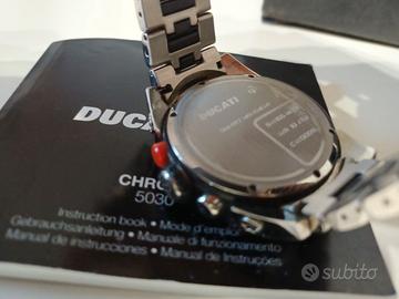 Vendo orologio da polso DUCATI CORSE movimento al quarzo Chrono 5030, con scatola e documenti originale, perfettamente funzionante ed in ottime condizioni come da foto, batteria sostituita da poco, per polso da 17.5/18 cm (ho anche la maglia in più). € 235,00 escluso tariffe PayPal e spese spedizione. Formula visto e piaciuto. Contatto privato per ulteriori foto e info.
