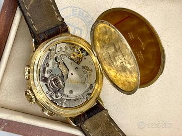 Orologio Eberhard "Calendier Complet": crono + triplo calendario + gmt. Cassa in argento sterling 925 laminata in oro giallo. Diametro cassa 38mm.
