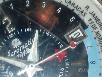 Orologio aeromatic 1912 edizione limitata n°12 su 100.. carica automatica, cinturino in vera pelle di coccodrillo,5ATM water resistent.... unico difetto,vite del pendolo funzione a movimento, è svitata..fare avvitare e visto che è aperto x il lavoro,fare un check-up generale