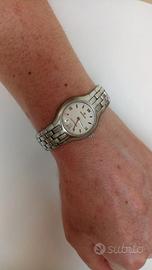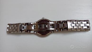Orologio in eccellenti condizioni estetiche e funzionali, condizioni NOS, batteria sostituita da poco. Edox linea Les Combes risalente agli anni 2005-10 ca, modello 51380. Alta qualità con movimento Swiss Made al quarzo ETA. Diametro 26mm esclusa corona, spessore di soli 5 mm, estremamente preciso, batteria cambiata di recente. Bracciale integrato alla cassa, il tutto in acciaio Inox a finitura satinata, peso ca 68gr con tutte le maglie. Il quadrante è di un raffinato bianco latte-ecru, non è un bianco ottico. Data a ore 6, indici applicati a tacche e numeri romani a ore 12, 3, 9. Vetro zaffiro. Corona logata. Resistenza all'acqua 3atm. Fondello a vite. Chiusura a farfalla con scritta e logo Edox, scritta Stainless Steel all'interno. La circonferenza da chiuso è ca 19 cm, le maglie in eccesso non sono mai state rimosse in quanto non è stato usato. L'orologio non ha graffi o segni di usura, è quasi come un NOS New Old Stock ma non dispongo della confezione originale. Al tempo la versione al quarzo era in vendita a circa 400 euro. Posso inviare numerose altre foto. Ritiro a Lainate (luogo in cui si trova) o posso consegnare gratuitamente su appuntamento a Milano, Arese, Rho previo scambio telefonico-WhatsApp. In caso di vendita a distanza effettuo spedizione rapida e tracciabile. Invito a vedere anche gli altri miei annunci, ho diversi cinturini vintage nuovi e un altro orologio: tutto ciò che si vede online significa che è ancora disponibile :)