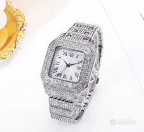 Orologio al quarzo brillante per uomo / donna, ricoperto di strass luminosi sulla cassa, quadrante e bracciale.
