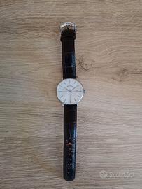 Orologio in perfette condizioni, batteria sostituita l'ultima volta nell'autunno del 2023; usato di rado. Cinturino in pelle testa di moro. Disegno pulito e raffinato, con l'unica complicazione del datario. Vendo con la confezione originale.