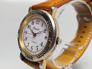 Orologio Elwest 1868 a carica manuale, modello del 1988, in pieno periodo Paninaro. A differenza dell'originale Winchester 1866 con movimento economico al quarzo, il marchio Elwest dotava il proprio clone di un movimento meccanico ZLM 2650 a carica manuale a 17 rubini, che funziona molto bene avendo una amplitudine di oltre 290 gradi. Il suo cinturino non è presente ma l'ho dotato di nuovo cinturino in vero cuoio, stesso colore ma molto più attuale per poterlo utilizzare ogni giorno. La cassa si presenta in ottimo stato con leggerissimi segni sul vetro minerale visibili solo in forte controluce. Davvero un pezzo di storia degli anni 80 con un cuore meccanico migliore dell'originale Winchester 1866 al quarzo. 37x42x9 mm