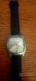 Orologio da polso Emerson, al quarzo, con cassa argentata e cinturino in pelle nera. Buone condizioni generali, come visibile in foto.