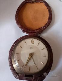 Orologio da tavolo EMES. Germany. Originale. Raro. Vintage. anni 60. In scatola di pelle vero. Funziona. Ricarica manuale.